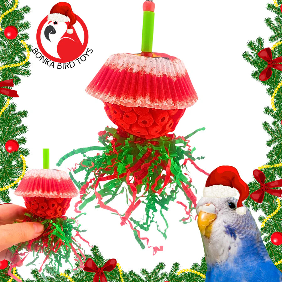* Festive Shreddable Layers: Wrapped in a Christmas-themed cupcake cup, the Shade Buckle invites birds to shred and explore, encouraging natural foraging instincts.