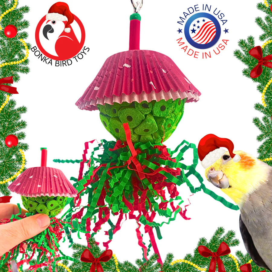 * Festive Shreddable Layers: Wrapped in a Christmas-themed cupcake cup, the Christmas Tree Shade invites birds to shred and explore, encouraging natural foraging instincts.